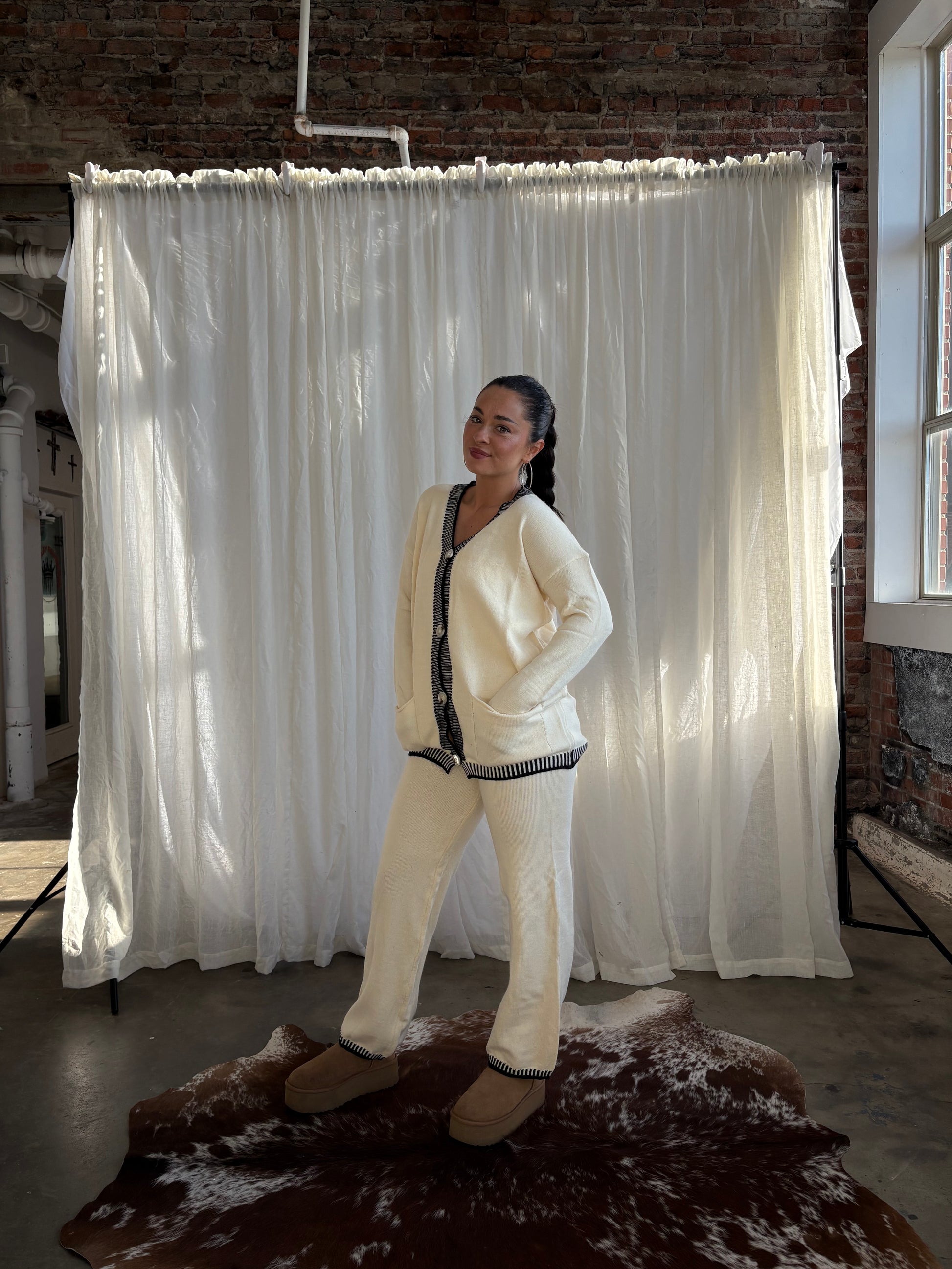 Meet your softest pants yet! Cozy knit, stretchy waistband, and that perfectly relaxed drape you’ll want to live in. Pair it with the matching Couch Club Cardigan for an outfit you'll be living in all winter.