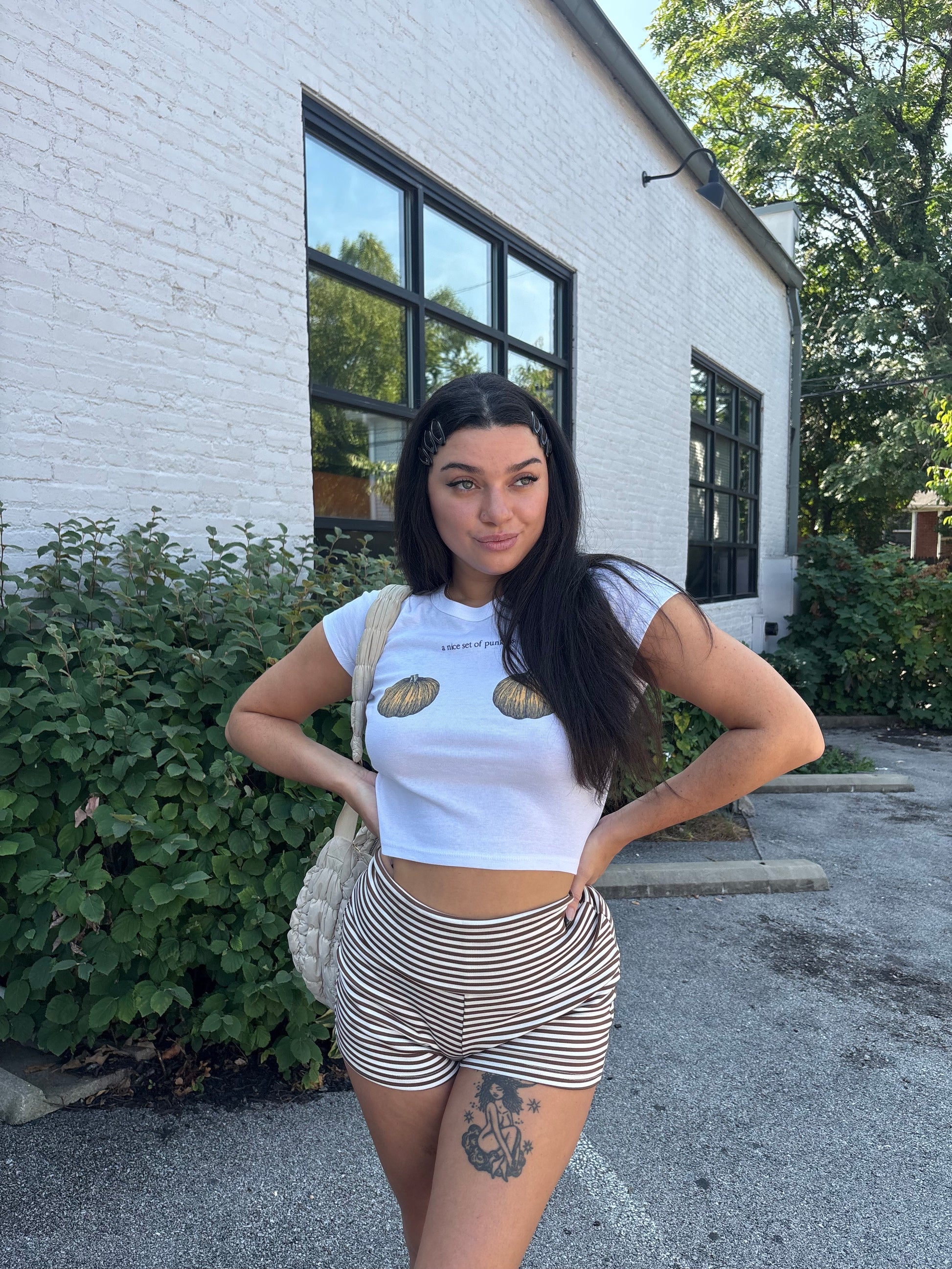 Show off your punkin’s and sense of humor in this super cute baby tee! It's def our fall uniform wby? Pair it with our Sunday Striped Fold Over Shorts to complete this look.