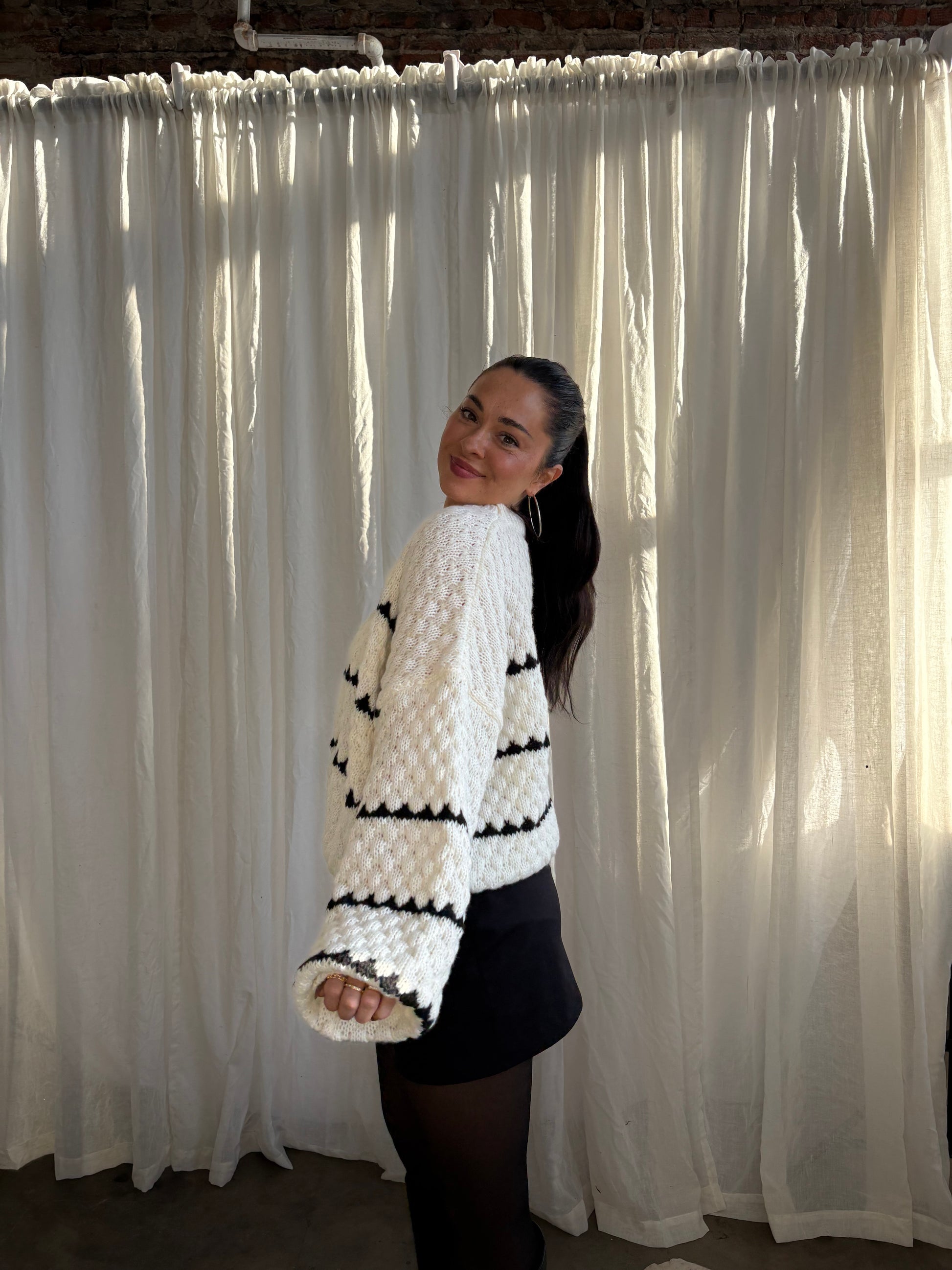 The cutest cozy fit for class, coffee runs, and literally everything in between. This oversized balloon sleeve sweater gives effortless cool girl energy with its black + white contrast and cozy, slouchy fit.